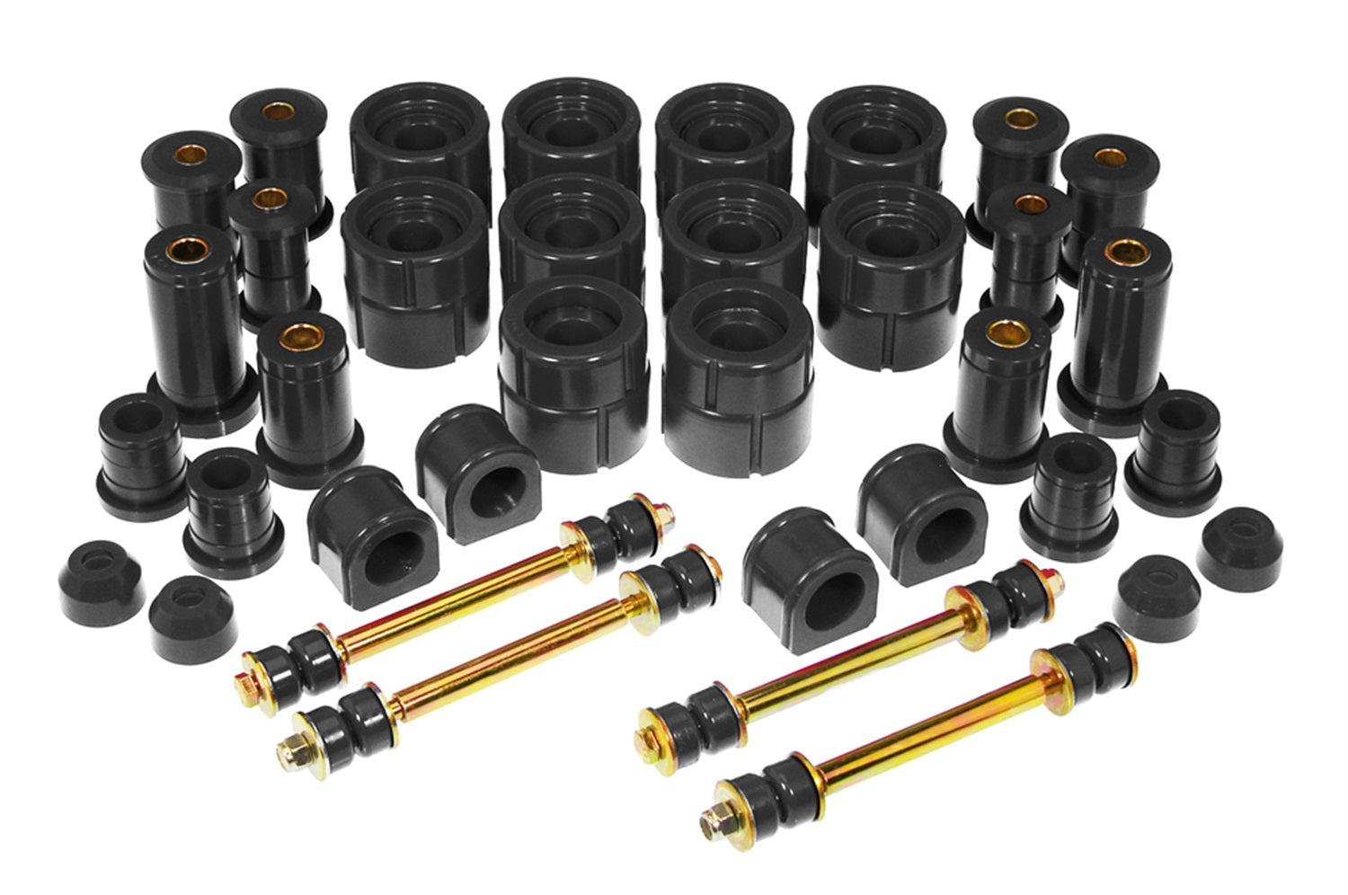 Black ; Incl. Body Mounts/C-Arm Front/Spring And Shackle Rear/Sway Bar Bushings/Sway Bar End Links/Tie Rod Boots;