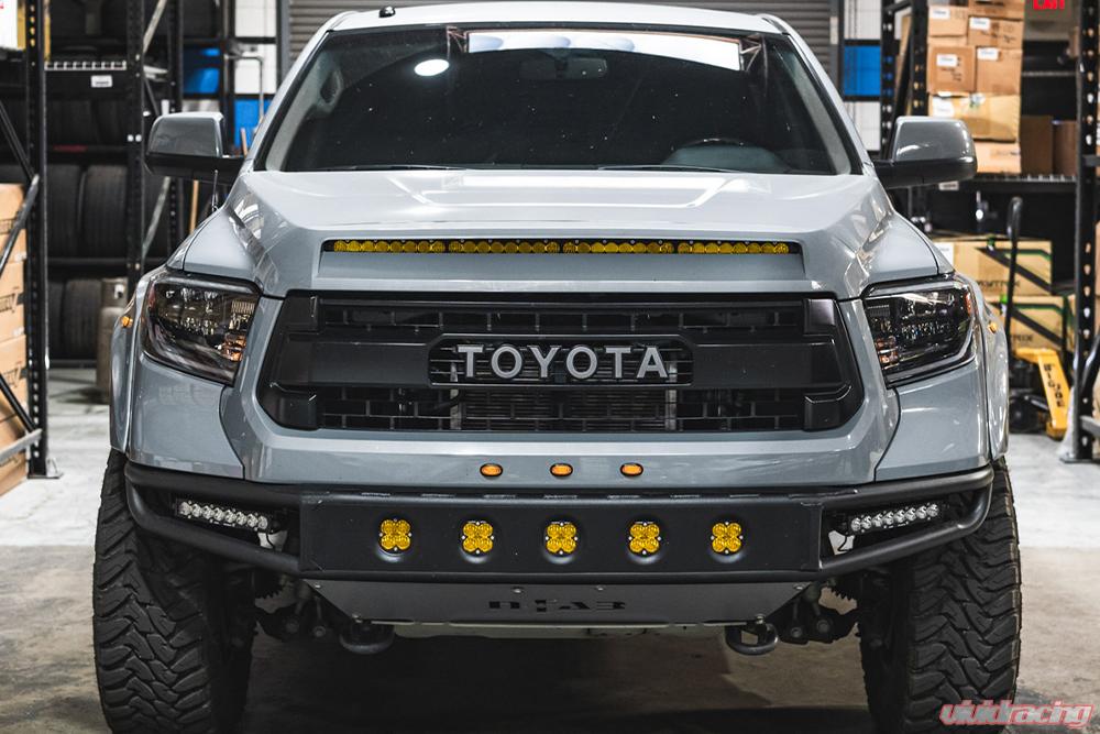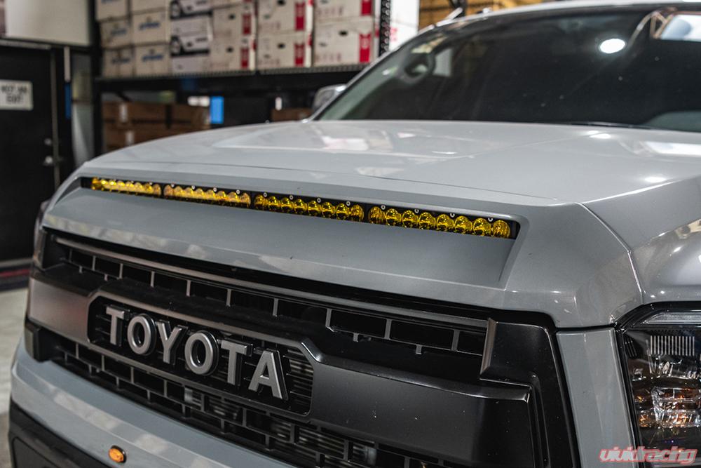 Toyota Tundra 2014-2021 Hood Grill Light Bar Bracket w/Baja Designs 40 Inch Amber Wide Driving Pattern S8 Series LED Light Bar